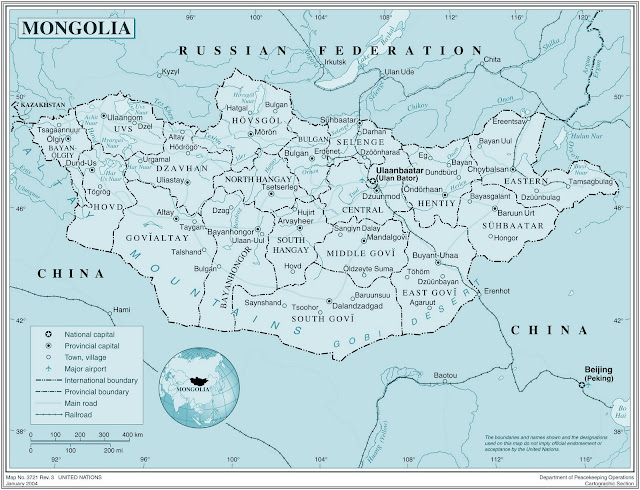 Here are some maps of Mongolia. The last one shows the city of Ulan Baatar with Mongolia International University, where we will be working, in relation to the city center. I will post more info soon.